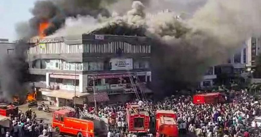 सूरत की राज टेक्सटाइल मार्केट में भीषण आग, 20 दुकानें जलकर राख—करोड़ों का नुकसान I